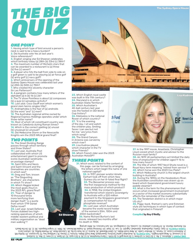 In yesterday’s West Australian a seemingly innocuous Big Quiz (page 32) contained the question: