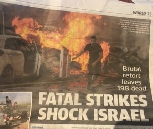 It is however time to draw a line on the relentless media bias and dishonest reporting that plagues our media. On this score the Perth Sunday Times needs to be called out for its disgraceful inclusion today. Using the words “Brutal retort” in its headline, the article commenced by focussing on Israel’s retaliation. It calls Hamas a “militant group” unable to label terrorism for what it is. As Rabbi Dee has pointed out today the definition of a Terrorist is “A person who uses unlawful violence and intimidation, especially against civilians.”