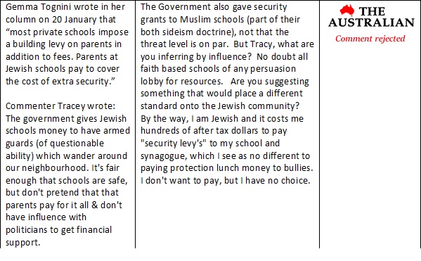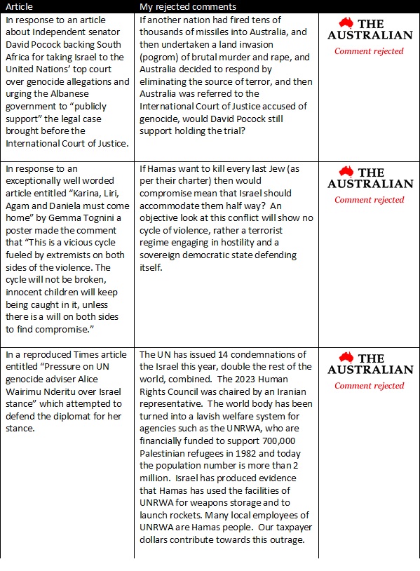 I have published many comments in their news articles, and in fairness most are accepted. However, there are a stream of comments I have made, many factual, that have been rejected for publication. Here are some of those comments that have been censored and not allowed past their moderation: