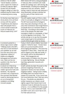 As a subscriber to the Australian, I am a big supporter of their strong editorial stance against anti-Semitism, their broad mix of coverage and op-ed, and the clarity of their political commentary. However they still stream syndicated media reports from agencies such as AFP or “staff writers” that often contain the out of control bias against Israel.